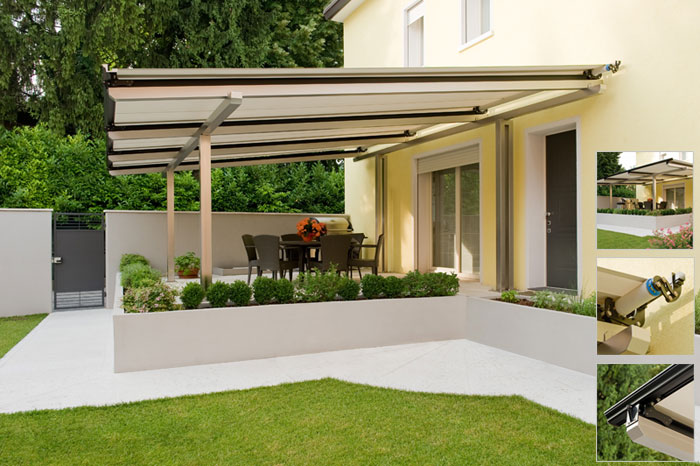 Creazione di effetto ad alternanza luminosa e protezione della travatura anche con copertura avvolta.