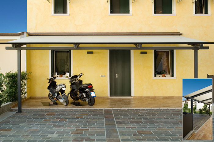 Copertura e protezione della travatura in legno con il minor impatto estetico possibile del sistema di copertura.